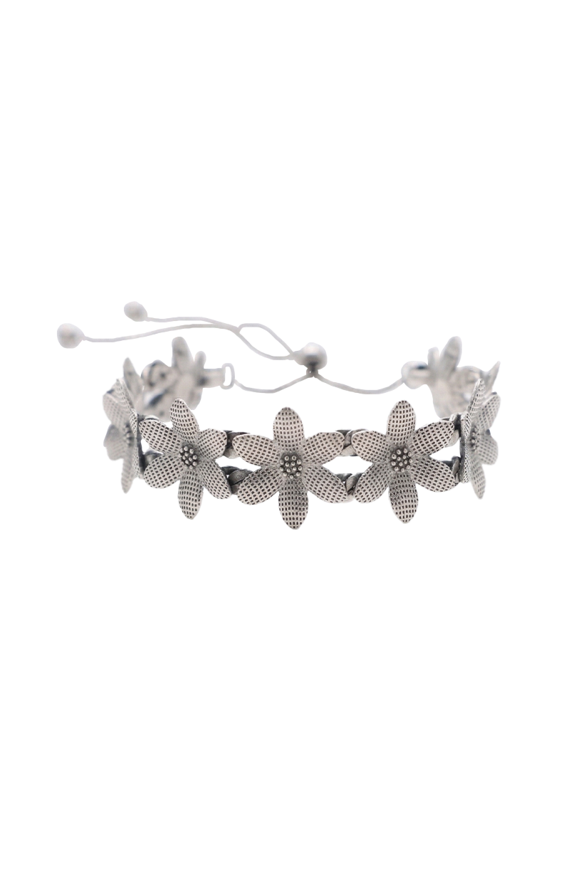 The textured detailing on every petal adds depth and a vintage appeal, making it a timeless piece that blends traditional artistry with modern elegance. Designed with an adjustable slider chain, it ensures a comfortable and perfect fit for every wrist. This bracelet is perfect for everyday elegance or for adding a soft, floral touch to your festive and ethnic looks.