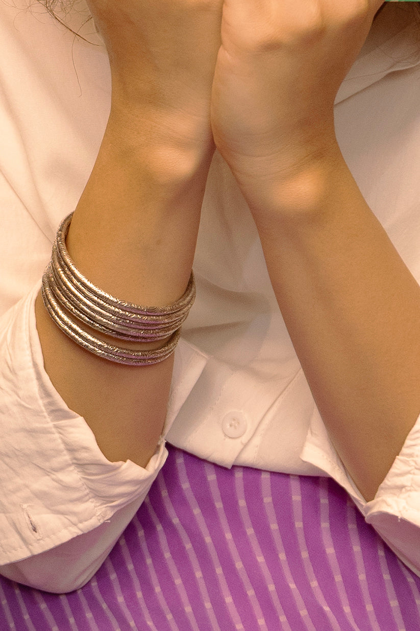 This pair of hand-engraved Chittai bangles are made in pure 925 silver. Worn solo, stacked up, or borrowed forever by your best friend. Afterall, who can keep their hands off of this? Or shall we say, this off of their hands! wink