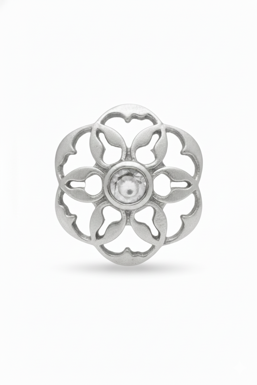 Inspired by delicate blooms, these Saumya Studs are finished with a warm gold polish and detailed with an intricate floral cutwork. A subtle Kundan Stone at the center adds gentle sparkle, making them perfect for everyday wear. Lightweight and comfortable, these earrings bring effortless elegance to workwear, festive looks, and casual styling.