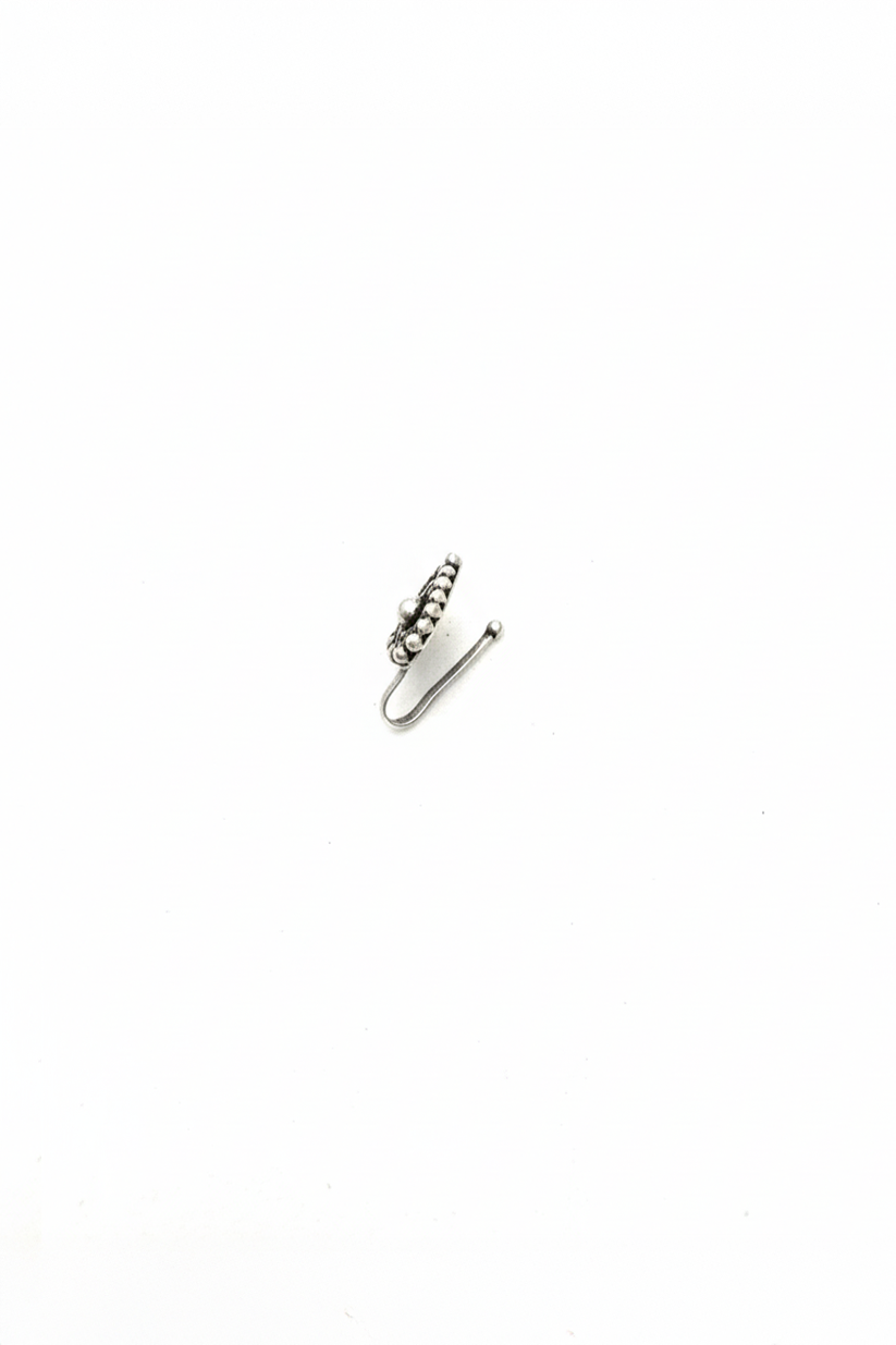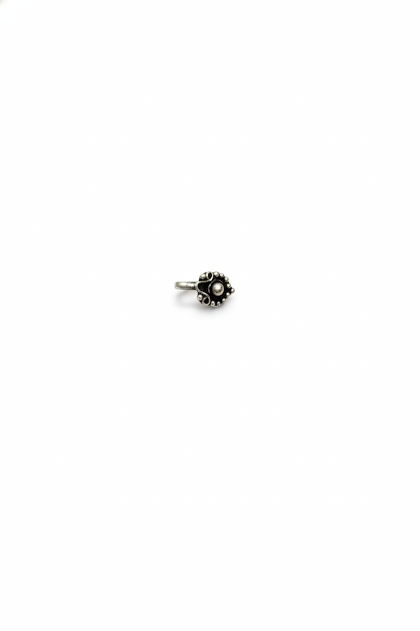 The Chhaya Rekha Nosepin is inspired by the beauty of fine lines and gentle curves. Crafted in 925 silver, this delicate nosepin features a graceful paisley outline with a tiny central bindu, highlighted by subtle oxidized detailing. The design is minimal yet expressive, reflecting traditional artistry in a soft, wearable form. Lightweight and comfortable, this nosepin is perfect for everyday wear.