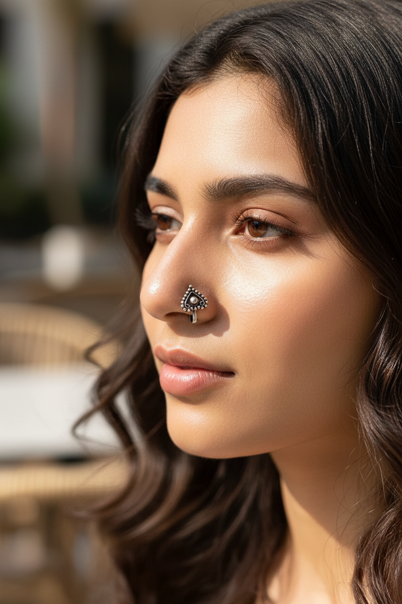 Designed to be worn effortlessly, the Chhaya Tiny Paisley Nose Pin is a beautiful choice for daily styling or meaningful gifting — a piece that quietly complements your natural grace, just like a shadow that follows you gently.
